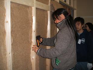 | ドア側の壁面 | たくさんの参加者! | ヘンプ断熱材 |